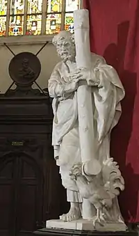 During the French revolutionary occupation starting in 1794, the church was saved by the decision of the priest Jan-Michiel Timmermans to swear allegiance to the French regime. The church lost some of its silver, the triptych by Marten de Vos and the statue of St. Peter by Artus Quellinus I to confiscation by the French. After the Concordat of 1801 between Napoleon and the Pope, the church became again the parish church of the Parish of St. Andrew’s in 1802 and the confiscated St. Peter statue was returned. It would take longer to recover the Marten de Vos triptych which finally ended up in the Museum of Fine Arts, Antwerp.[1]