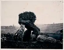At Fenagh, two church ruins stand on the site of an earlier monastery founded by St. Caillin in the 6th century. The main ruins of the Gothic church have (among other features) an east window of unusual design and a relief-carved 17th-century penal cross. A number of standing stones in the vicinity represent the petrified bodies of druids who tried to expel St. Caillin from Fenagh. There are a number of other prehistoric remains located in or near the village. A portal tomb at the north of the village is said to be the burial place of King Conall Gulban. 19 Gaelic kings are said to be buried in the graveyard. There was also a divinity school at Fenagh. It is believed that community life continued until 1652, when Cromwellian soldiers sacked it. It was damaged by cannon fire during the Williamite wars in 1690, and the last service was said in 1729. The site is on the northern shore of Fenagh Lough.