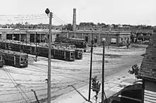 In the late 1980s, the yard became a streetcar graveyard for retired, and often partly stripped, PCCs awaiting disposal. Retired trolley buses were also placed in the yard.[6]