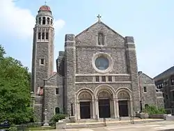 The current church was built in 1924. The campus also includes a rectory, daycare, and elementary school.
