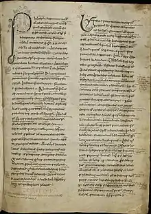 The St. Gall Priscian Glosses (Codex Sangallensis 904), abbreviated Sg., is an Irish manuscript of the Latin grammar Institutiones grammaticae by Priscian, held by the Abbey Library of St. Gall. It contains 9412 glosses, including 3478 in Old Irish.[1] Together with the Würzburg glosses on the Epistles of St Paul and the Milan glosses on a Commentary on the Psalms they provide the main source of Old Irish writing available today and thus serve as an important reference for linguistic research on Old Irish.[2]