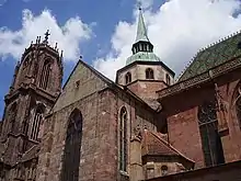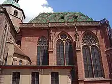 St. George's Church, Sélestat, is a Gothic church in Sélestat (formerly Schlettstadt), Bas-Rhin, Alsace, France. The church, of exceptional size and quality,[3] is near the Humanist Library, which was founded in 1452 by Jean de Westhuss, priest at the church of St. George's. Originally dedicated to the Blessed Virgin Mary, the church has been named after Saint George since 1500 and is famous for its Christmas trees hung since 1521[4]
