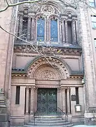 St. George's Episcopal Church is a historic church located at 209 East 16th Street at Rutherford Place, on Stuyvesant Square in Manhattan, New York City. Called "one of the first and most significant examples of Early Romanesque Revival church architecture in America",[5] the church exterior was designed by Charles Otto Blesch and the interior by Leopold Eidlitz. It is one of the two sanctuaries of the Calvary-St. George's Parish.