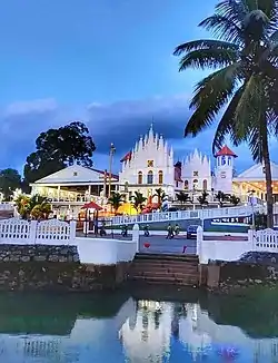 The paddy fields in front of the church are usually flooded in May. Thousands of wick lamps are lit and floated in coconut shells in these waters on the evening of 6 May before the processions. The feast ends with a firework display soon after the procession.