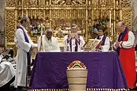 St. James' Church worships in a variety of styles within the Anglican tradition. Four services of Holy Eucharist are celebrated every Sunday.[1]