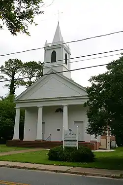 St. James Church is a historic Episcopal Church on Drummondtown Road near Back Street in Accomac, Virginia, United States. Originally established as a chapel of ease for Accomack Parish in the seventeenth century, the present St. James Church was erected in 1838 as the town then known as Drummondtown grew as the county seat (and renamed Accomac in 1892). In recognition of its Greek Revival design and interior trompe-l'oeil frescos, St. James Church was listed on the National Register of Historic Places in 1969. It is also a contributing building of the Accomac Historic District which was created in 1992.