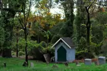 J. Aquila Scott, a free African-American, moved to the Bare Hills area in the 1820s, and in 1833, was named among the five trustees of a small congregation of the Bethel Episcopal Methodist Religious Society in a deed from Mary and Elijah Fishpaw.[2] The deed was for three quarters of an acre of land in the northeast corner of the Hopyard tract on which to build a cemetery and Methodist church. The local African-American congregation, which had been meeting at Scott's home, established a parsonage and built a log cabin church on the plot.[3]