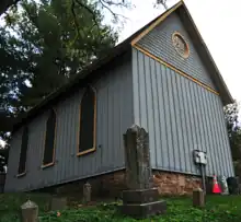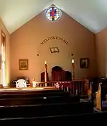 Also on the property are a simple frame rectangular social hall built in 1886 by Rev. Edward W. Scott and an extensive burial ground behind the church.