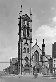 The parish of St. John's was organized in Detroit in 1858, primarily due to the efforts of Henry Porter Baldwin, a successful merchant who later became governor of Michigan and a United States senator.[4] Porter purchased and donated the property, which was then on the northern outskirts of Detroit's city limits at the corner of Woodward and High Street (now Interstate 75). He also donated the money to build a rectory and a 150-seat chapel, designed by Jordan & Anderson.[4]