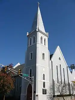 St. John's Episcopal Church is a historic Episcopal church located at Lafayette, Tippecanoe County, Indiana. Founded by Parson Samuel R. Johnson, early services were held beginning in 1836–37 in the counting room of Thomas Benbridge. Benbridge had an accounting office.[2] The first building dedicated on 30 Dec 1838 on Missouri St. A new Gothic Revival style church was built in 1858 on the Northwest corner of Sixth and Ferry. Major repairs were completed in 1887 with the addition of a Sunday School.[2][3]