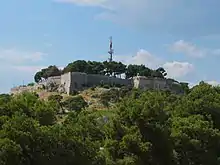 The first construction phase, in 1646, consisted of a dry-stone star-shaped fort, built around the foundations of St. John's chapel.[11] Many adaptations between 1646 and the mid-1660s resulted in a shape similar to today's.[12] It is worth noting that the Fortress of St. John, at the time not even fully completed, in 1647 repulsed what was almost certainly the largest invading army in Dalmatia since Roman times.