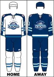 The first St. John's IceCaps' franchise wore uniforms patterned after the Winnipeg Jets: aviator blue, white, polar night blue, and silver. The IceCaps' jerseys also included the Winnipeg Jets' primary logo on the shoulder. The second franchise had uniforms patterned after the Montreal Canadiens' traditional red, blue, and white.