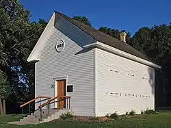 The building is one story high, built in the Greek Revival style, with white clapboard siding on the exterior. The interior was heated with a simple wood stove at the back of the church, and lit with kerosene lamps and Coleman Quick-Lite chandeliers. It also did not have running water or inside bathrooms. The chancel and pulpit were donated by a church in Osseo, Minnesota, that was doing its own renovations. The community never had a congregation large enough to justify having a full-time pastor. The church relied on lay people to do readings, as well as sharing a pastor with St. John's of Weber, Minnesota. Pastor F.J. Mack, who served from 1924 through 1945, began offering services in English and stopped offering services in German. In 1959, the congregation decided to merge with St. John's of Weber after facing declining membership.[2]