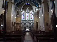 In 1925, through a donation by the family of John Murphy of Avoca Avenue, Harry Clarke Studio was commissioned to create two stained glass windows. These windows can be seen as the third stained glass windows on both the west and east aisles.[2]