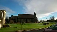 The building is a freestanding 41 bay, 3 storeyed psychiatric hospital built on twenty-five acres of land purchased in 1848 for £829 which eventually opened as the Mullingar District Lunatic Asylum on 23 August 1855.[2] It was extended c. 1895 following the construction of a gate house and a red chimneystack.[3] The hospital is a well-detailed Victorian institutional complex with its extensive Tudor Gothic detailing. The structure was built to designs by John Skipton Mulvany, possibly the most celebrated architect operating in Ireland at the time. It cost some £35,430 (equivalent to €3.2 million in today's money) to build, and was built to accommodate 300 patients.[4] The first patients were transferred from the Richmond Surgical Hospital in Dublin, and all of them were female.[5] In the grounds of the hospital, there are various buildings including a chapel which was constructed c. 1886,[6] a nurses' home and an infirmary which were built c. 1940.[7][8]