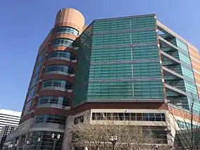 The St. Louis County Jail is located inside the Buzz Westfall Justice Center in Clayton, Missouri at 100 South Central Avenue, about eight miles (13 km) from downtown St. Louis. The holding capacity of the facility is 1,400 male and female inmates. The St. Louis County Jail is a direct-supervision facility that detains adults and juveniles being tried as adults who are awaiting trial or serving county sentences and is the only jail in Missouri that holds an accreditation known as the ALDF from the American Correctional Association (ACA).[1] Opened in March 1998, the center replaced both the jail in the 1949 St. Louis County Courthouse building and the Adult Correctional Building in Chesterfield, Missouri.[2] The center was rededicated the "Buzz Westfall Justice Center" in 2004.[1]