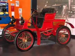 In 1902 a steering wheel was introduced. A new model was a 35hp four-cylinder engine touring car was available for one year only. The single and twin-cylinder engines remained in production. By 1904 there were two models with single-cylinder engines, the runabout and tonneau . A 24hp three-cylinder engine was introduced with a tonneau body.[1][4]