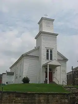 St. Luke's Episcopal Church is a historic Episcopal church at Cannelton, Perry County, Indiana. Built about 1845–1846, it is a rectangular Greek Revival style frame building with a gable roof. It was lengthened by 17 feet in 1864, and features a three-story centered bell tower on the front facade.[2]: 2, 3