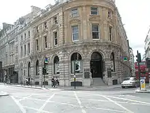 The heavily rusticated east front (illustrated above), facing into Bishopsgate, was described by James Peller Malcolm as "a complete representation of a gaol, accompanied by marks of extreme strength, very ill suited to its diminutive outline." The north side, towards Threadneedle Street, was very plain.[2]