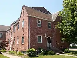 The Rev. Joseph Brinkman became the pastor in 1889. He had been instrumental in the construction of the Basilica of St. Francis Xavier in Dyersville, Iowa.[3] Brinkman designed a new school (1894), rectory (1899), and the present church (1904). Parishioners had determined that the school building was too small. The 50-by-70-foot (15 by 21 m) Colonial Revival structure was completed for $8,000, and the old school building was converted into a convent.[3] Soon after the roof of the frame rectory started to deteriorate and it had other problems. A building committee of parishioners decided not to waste money on the old house. The new 42-by-34-foot (13 by 10 m) residence was completed for $3,500.[3] It is a two-story, brick Colonial Revival structure with Italianate influences. The old rectory was moved to a different lot in town.