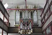 The main organ was built in 1979 by Ekkehard Simon from Landshut. It included the Gothic-revival front from 1904. It features 45 stops on three manuals and pedal.[5]