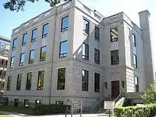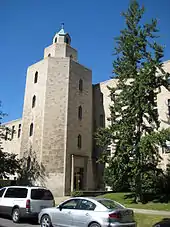 The cornerstone was laid at Clover Hill on September 16, 1855, for the college building and the college parish of St. Basil's Church, which was consecrated November 16, 1856 with a Pontifical High Mass.[8] This building is the oldest building at the University of Toronto in continuous academic use. A further addition, designed by William Irving, was constructed between 1872 and 1873 to house an auditorium, classrooms and student residence. In 1996, the original building was completely renovated by Carlos Ott Partnership Architects and renamed Odette Hall, and a modern religious art gallery donated by Fr. Daniel Donovan was installed on the two lower floors.
