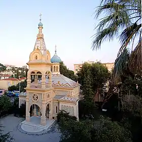 St. Michael the Archangel Church, Cannes is an Eastern Orthodox church in Cannes, France (40 Boulevard Alexandre III). It was built in 1894. The parish of the church has been, for most of its history, under the jurisdiction of the Archdiocese of Russian Orthodox churches in Western Europe, an exarchate of the Ecumenical Patriarchate of Constantinople from 1931 until November 2018; in September 2019, the parish switched to the jurisdiction of the Moscow Patriarchate.
