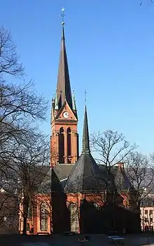 The Evangelical-Lutheran parish church of St. Nicholas (German: Pfarrkirche St. Nikolai) in Aue is a Neo-Gothic hall church of the Evangelical Lutheran State Church of Saxony in the Saxon Ore Mountains and the tallest building in the town.