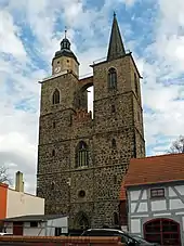 The St. Nikolai church is the largest medieval church in Jüterbog, Brandenburg, Germany. The nave is a Brick Gothic hall church construction with field stone dual towers that dominate the cityscape. The church was first mentioned in 1307 and likely consecrated in 1488. The Patron saint is St. Nicholas of Myra.