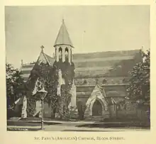 The congregation soon outgrew this building and by 1858, construction began on a stone building, what is now called the old church, designed by brothers George Kent Radford and Edward Radford.[4] This building was completed in 1860 with services first being held on December 9 of that year.[2] The tower was completed in 1894.