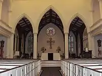 As a result of further change in liturgical emphasis to give the Eucharist a more central role in worship, the altar was moved in 1968 from the rear of the recessed chancel to its center. At that time, the organ in the chancel was replaced. A new organ constructed by Casavant Frères was installed in the West gallery.[46]