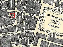 The land of the Whitefriars, who arrived in Dublin in the 12th century, took in what was probably a pre-Viking Irish monastic settlement. A small church, dedicated to St. Peter (St. Peter del Hille - St. Peter on the Hill), was built in 1280 near present-day Stephen St. Later a hostel and church, dedicated to St. Stephen (after which St. Stephen's Green is named) and for the use of lepers, was built nearby, and its clergy also administered to the parishioners of St. Peter's. The Whitefriars were dissolved by Henry VIII in the 16th century and their lands forfeited by the Crown during the Reformation.[1][2]