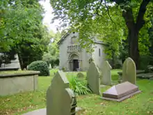 The outstanding feature of the churchyard is the Norman Chapel.[8] Dating from 1175 to 1190, it began to fall into disrepair a few years after the present church came into use. In 1747 it was rebuilt by Sir William Meredith of Henbury so that his son Amos and other members of his family could be buried there. Restored in 1953, it is now used for a variety of church purposes.