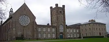 Founded in 1811 by Most Rev. Patrick Ryan, Bishop of Ferns, the college has progressed from a Roman Catholic Seminary in Michael Street, Wexford to the present buildings.[2] In 1818, the large house at Summerhill was purchased and Bishop Ryan blessed the foundation stone of an extension to be constructed to the rear of the house. In 1819, Bishop James Keating opened the new college and the President, staff and student body of Michael Street took up residence. Rev. Miles Murphy was the first president, he went on to become a Bishop. Expansion occurred for years afterwards and the impressive façade with its distinctive tower and the chapel designed by Augustus Welby Pugin were constructed. In 1855 the college became affiliated to the Catholic University of Ireland, in 1858 a theology course was offered to students. Up until 1897 students went on to finish their Theology and Philosophy courses St Patrick's College, Maynooth, (or another seminary), but from 1901 students completed their studies in St. Peter's and were ordained. Over 160 priests ordained for American dioceses were trained in St. Peter's.[3]