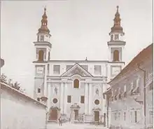 The original church at the site was presumably built near the city walls already at the turn of the 9th century on the order of Paulinus II, the Patriarch of Aquilea.[1] It was the seat of the Primitive Parish of Ljubljana. The church was encircled by a cemetery that was the main town cemetery until 1779, when it was abandoned.[2]
