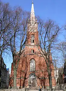 The neo-Gothic church was designed by Johann Felsko. The foundation stone was laid in 1857 and the church was consecrated on 26 July 1859 by Bishop Walter Trower. Church use was halted during the Soviet occupation, and in 1973 it became the home of the Riga Polytechnic Institute student club.[2][3]