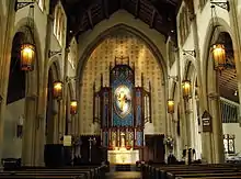During Father Barbour's time as rector, all three of the church altars were redone. A gift from a parishioner provided a carved-in-Italy colossal figure of the Ascending Christ, around which the distinguished liturgical artist Rhett Judice designed and executed a new reredos over the main altar. This was in the midst of the AIDS epidemic and it was felt a symbol of hope and resurrection was needed. Later Rhett Judice built a new reredos for the Lady chapel, also of his own design, and an altar and reredos for the Damien chapel in the east porch of the church, centering on the figure of Christ the King flanked by Saint Thomas the Apostle and Blessed Father Damien, the leper priest of Molokai. In 1998, Rhett completed the "East Wall" (liturgical east) and created the Stations of the Cross currently in use.