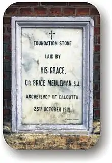 The foundation stone of St. Vincent's School was laid by Dr. Meulman, S.J., Archbishop of Calcutta, on 25 October 1919.
