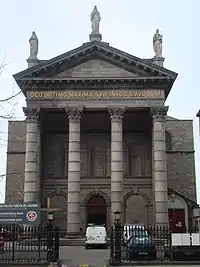 The church was built between 1841 and 1847 to the neoclassical design of Patrick Byrne who also designed nearby St. Paul's Church on Arran Quay and Church of the Immaculate Conception (Adam and Eve's) on Merchants Quay.[1] The cornerstone was laid in July 1841. A founding member donor being Daniel O’Connell.