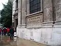 Within the churchyard, the church hall is the Grade II, former livery hall of the Worshipful Company of Fan Makers. It is a single-storied classical red brick and Portland stone building, with niches containing figures of charity children.[21]