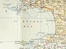 St Brides Bay (Welsh: Bae Sain Ffraid) is a bay in western Pembrokeshire, West Wales.