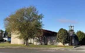 The church was weakened by a magnitude 5.9 earthquake centred at Westport on 10 May 1962, and by the Inangahua earthquake in 1968.[9][10] The cost of repairs and seismic strengthening were deemed prohibitive, and in May 1971 it was decided to replace the church with a new building to be designed by John Scott,[9] who has been described as "the greatest church designer of this country's modern era".[11] Scott's appointment was controversial at the time, as Charles Thomas, a Christchurch architect, had already done preliminary work for the new church.[12] The parish priest at the time, Father David Monaghan, who encouraged the parish committee to engage Scott, had come to Westport from Havelock North in 1970, and was intimately familiar with Scott's Our Lady of Lourdes Church (1960), where he had been parish priest from 1968.[13][14]