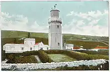 The first lighthouse was established on St Catherine's Down in 1323 on the orders of the Pope, after a ship ran aground nearby and its cargo was either lost or plundered. Once part of St Catherine's Oratory, its octagonal stone tower can still be seen today on the hill to the west of Niton. It is known locally as the "Pepperpot".[2] Nearby there are the footings of a replacement lighthouse begun in 1785, but this was never completed because the hill is prone to dense fog.[3] It is sometimes called the "salt pot".[4]
