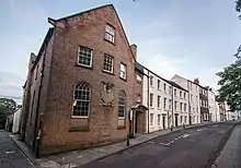 Queen's Court, 1 and 2 North Bailey, is a grade II listed building located at the junction between Saddler Street, North Bailey, and Owengate. It was built in the early 19th century and contains 24 student rooms.[13][14] The college for many years occupied only 1 North Bailey, while no. 2 housed the Music Department. The two parts were reunited in 2013.[15]