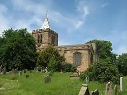 The churchyard contains 57 Commonwealth war graves of service personnel, 9 from World War I and 48 (predominately Royal Air Force) from World War II.[8] Among those from the former war buried here is the politician William Glynne Charles Gladstone, a grandson of the Prime Minister, killed in action in 1915.[9]