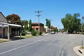 The town is located the Oaklands railway line that continues to Yarrawonga and across the border to Oaklands in New South Wales.