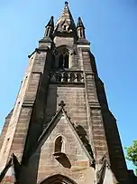 In 1871, Edmund Blacket commenced work on the ornate tower and spire, which is the major feature of the building. The transepts, tower and spire were added by 1875, and the chancel by 1875.[3]