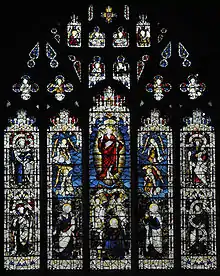 The East Window of St John's Church above the High Altar. The Window depicts Christ in His Majesty with his twelve Disciples and St John the Evangelist