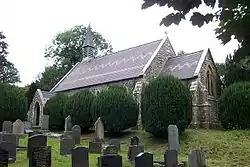 It was built in 1873 as an Anglican church to a design by Sir George Gilbert Scott[2] and consecrated on 19 June that year.[3] A small church with lancet windows, it consisted of a nave, a small chancel, a south porch and it had a bellcote at the west end. It was restored in 1899 by the Chester firm of architects, Douglas and Fordham, who added a vestry at the northeast and an organ chamber, and increased the size of the chancel by extending it into the nave. At the same time, the internal plaster was removed and replaced by a veneer of limestone, and furnishings designed by Douglas were added.[2]