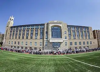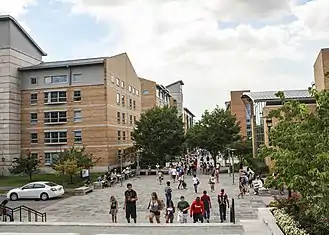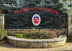 St. John's University is a private Roman Catholic university in Queens, New York City. It was founded in 1870 by the Congregation of the Mission (C.M., the Vincentian Fathers) with a mission to provide the youth of New York with a Catholic university education.[4] Originally located in the Brooklyn borough of New York City, the flagship campus was moved to its current location in the Queens borough during the 1950s.[5] St. John's has additional New York City campuses in Staten Island and Manhattan, as well as the Long Island Graduate Center in Hauppauge, New York.[6] Additionally, the university has international campuses located in Rome, Italy, Paris, France,[7] and Limerick, Ireland.[8] The university is under the patronage of Saint John the Baptist.[5]